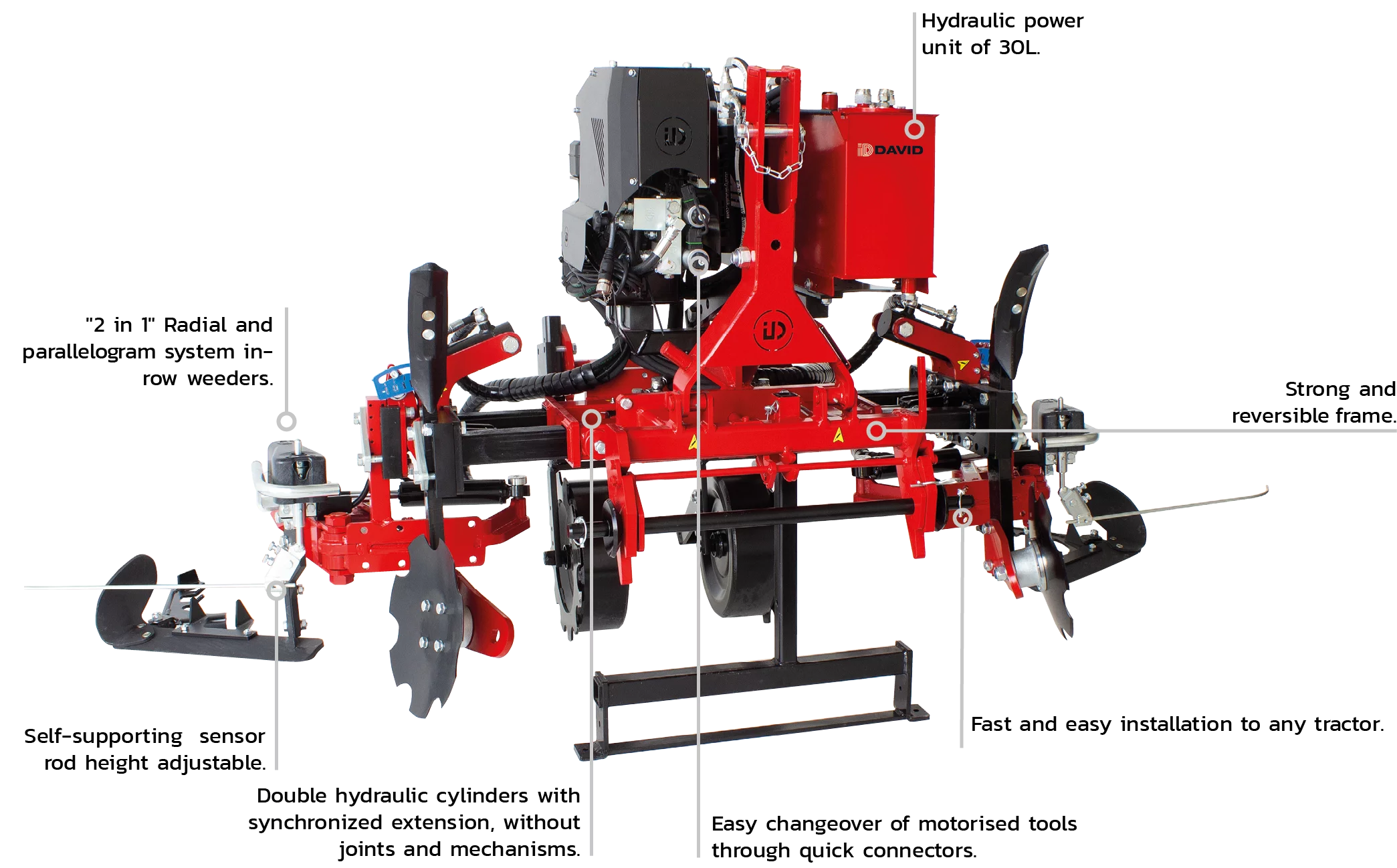 - Hydraulic width adjusting to the tractor.