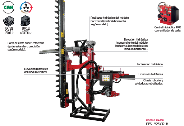 • Independent electro-hydraulic lifting of the horizontal module (depending on model).