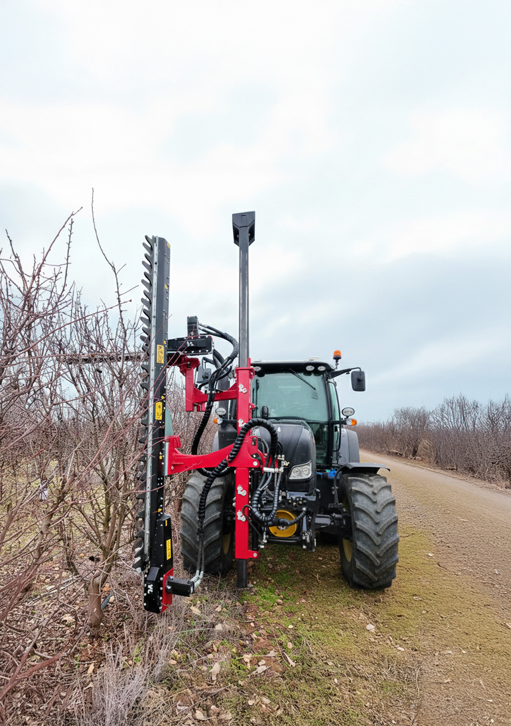 L-shape pruner with sickle bar. Ideal for simultaneously performing lateral and top cuts on the same row. Its design is especially suited for work in high-density fruit plantations.