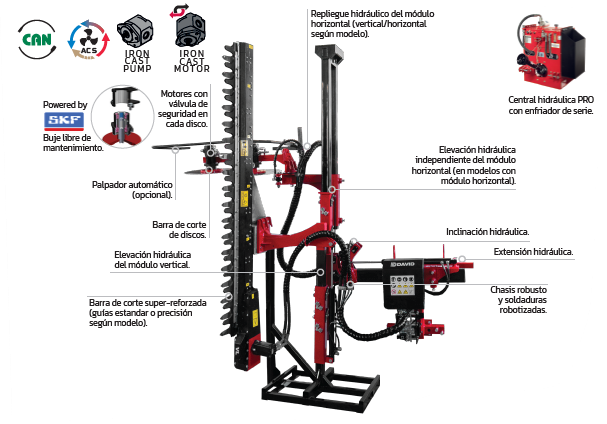 • Independent electro-hydraulic lifting of the horizontal module (depending on model).