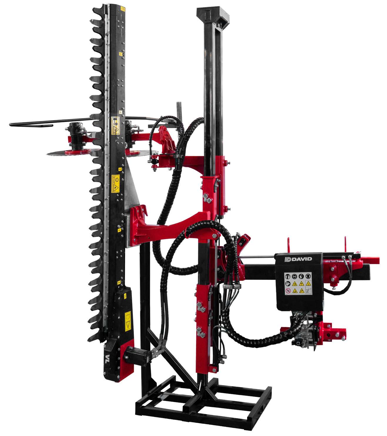 L-shape pruner with disc and sickle bar. Ideal for simultaneously performing lateral and top cuts on the same row. Its design is especially suited for work in high-density fruit plantations.