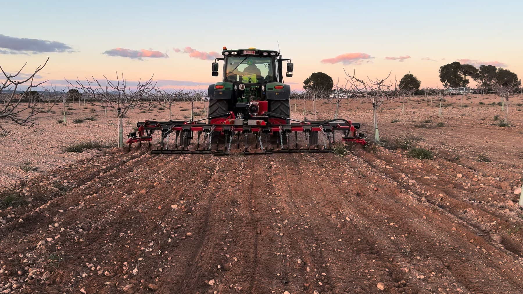 Cultivateurs avec bras élastomères haute résistance et unités inter-rangs avec repliage hydraulique vertical. Conception robuste pour le travail du sol dans les vergers et les oliveraies traditionnels et intensifs.