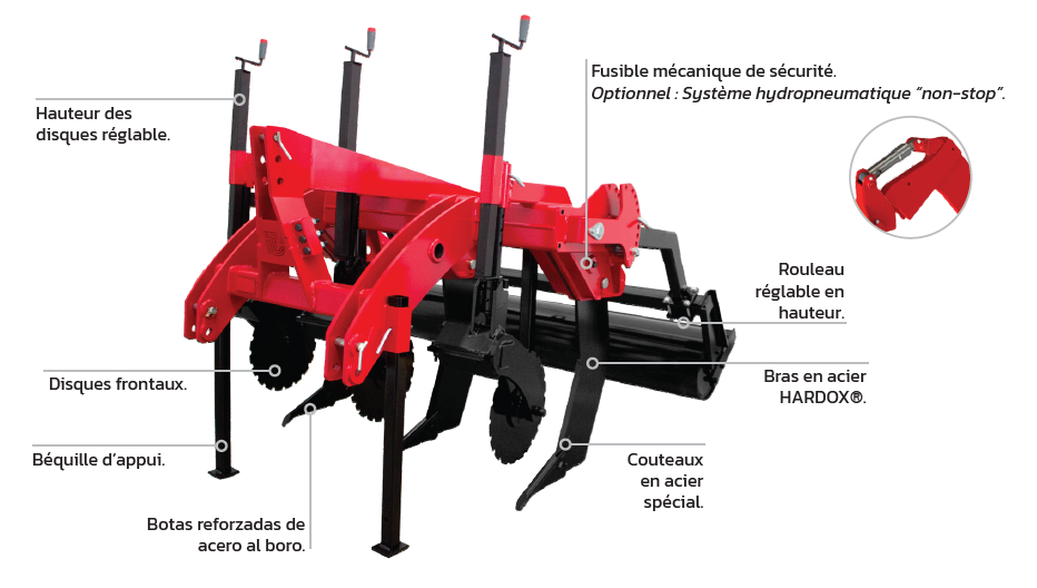 Idéal pour travailler le sol sans compromettre le couvert végétal, en maintenant sa fonction protectrice et en améliorant la structure du terrain dans des conditions exigeantes.