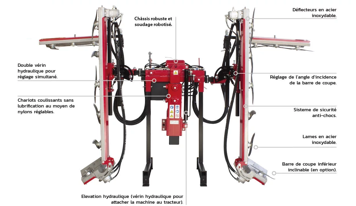 Ecimeuse pour vigne et cultures en haies pour mantenir la croissance végétative sous contrôle.