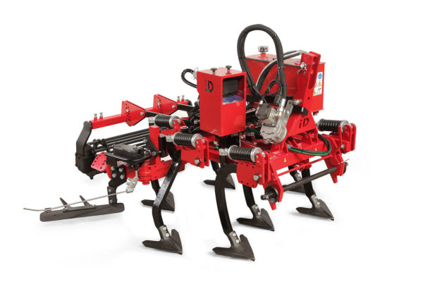 Telaio per attacco frontale (utilizzabile in tutti i trattori senza attacco 3 punto frontale).Specialmente indicato per il controllo dell’ erba con particolare utilizzo tra le piante (fondalmentalmente vigneti e frutteti a spalliera).Equipaggiato di 2 interceppi electroidraulici azionati tramite una centrale idraulica e una centralina di comando nella cabina del trattore, è ideale per lavori tra le piante anche con diametro da 1 cm. Può essere equipaggiato con diverse testate per un lavoro sia di superficie senza rimozione del terreno sia per un lavoro di profondita fino a 20 cm. Il braccio è equipaggiato di un tastatore regolabile con sistema induttivo ed ha un sistema esclusivo che combina il movimento a parallelogramma con il movimento radiale, conferendo una grande precisione ed una grande tolleranza incluso nelle deviazioni che superano i 30 cm di allineamento tra le piante o un’imprecisa conduzione del trattore. Permette velocità di lavoro fino a 12 km/h.