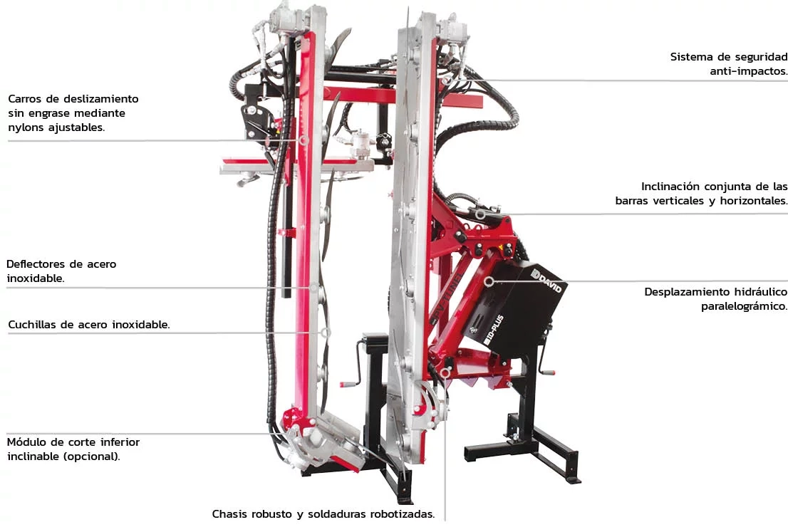 - Ajuste electrohidráulico entre barras de corte verticales.